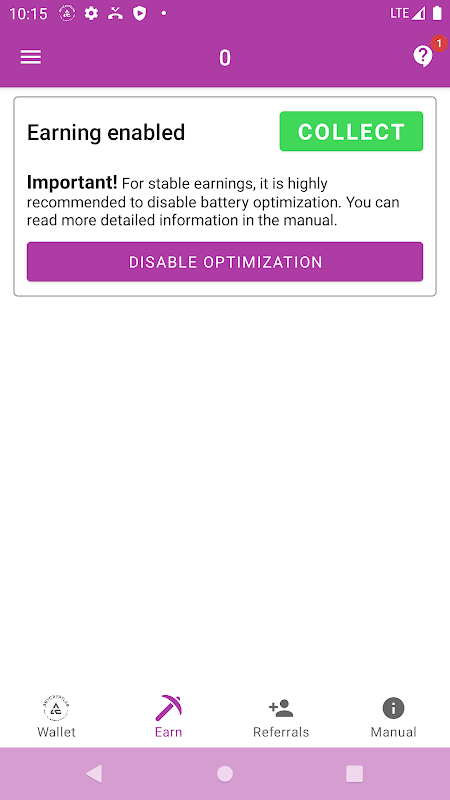 Aby zarabiać, użytkownicy muszą pobrać aplikację i zarejestrować się w systemie. Użytkownik musi zapoznać się z regulaminem i kliknąć przycisk „Akceptuję”. Procedura rejestracji zajmie tylko kilka minut. Następnie możesz od razu rozpocząć wydobywanie w aplikacji.