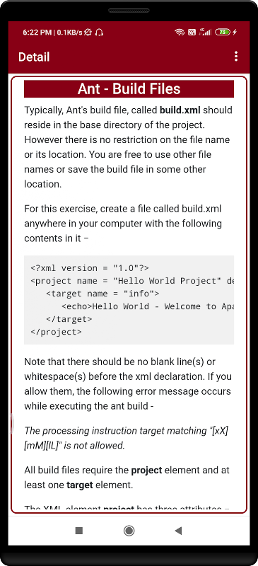 Apache Ant's build files are written in XML and they take advantage of being open standard, portable and easy to understand.