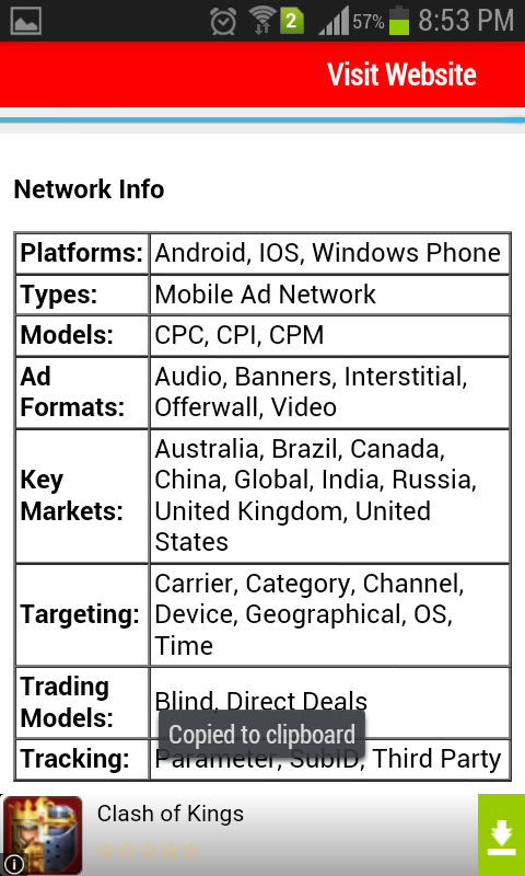 -Get Descriptions about top mobile app advertising/monetization Networks.