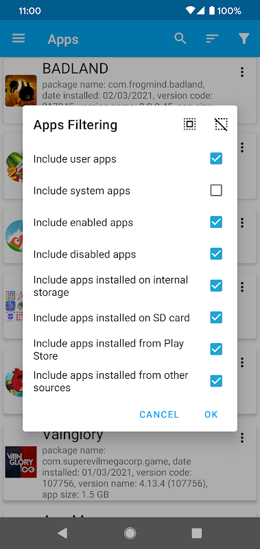 • Sortuj aplikacje według rozmiaru, nazwy, pakietu, daty instalacji, daty aktualizacji, czasu uruchomienia