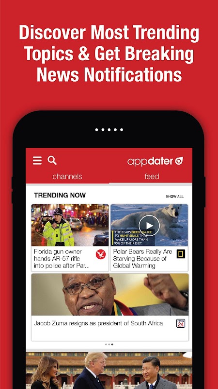 Appdater to spersonalizowana aplikacja wiadomości, która pozwala odkrywać najświeższe wiadomości, trendy w modzie, przeglądać najnowsze filmy i być na bieżąco z nowościami wokół ciebie.