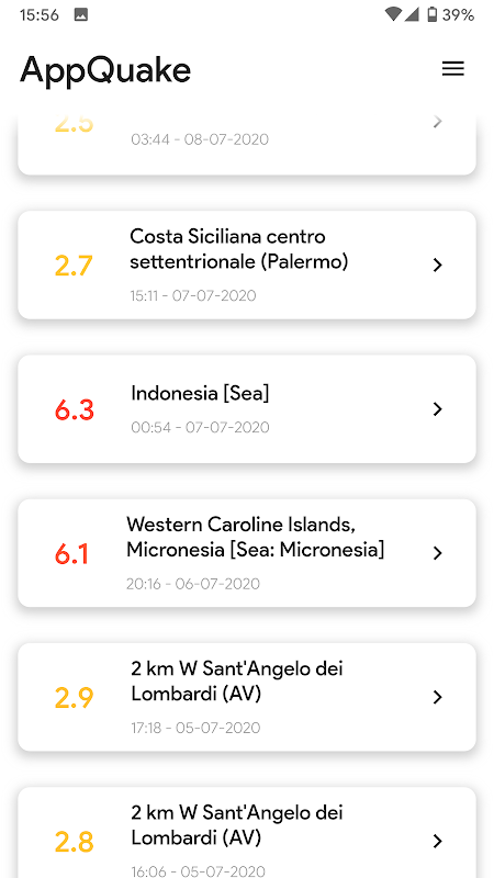 Aplikacja, która pokazuje trzęsienia ziemi zarejestrowane w ciągu ostatnich siedmiu dni