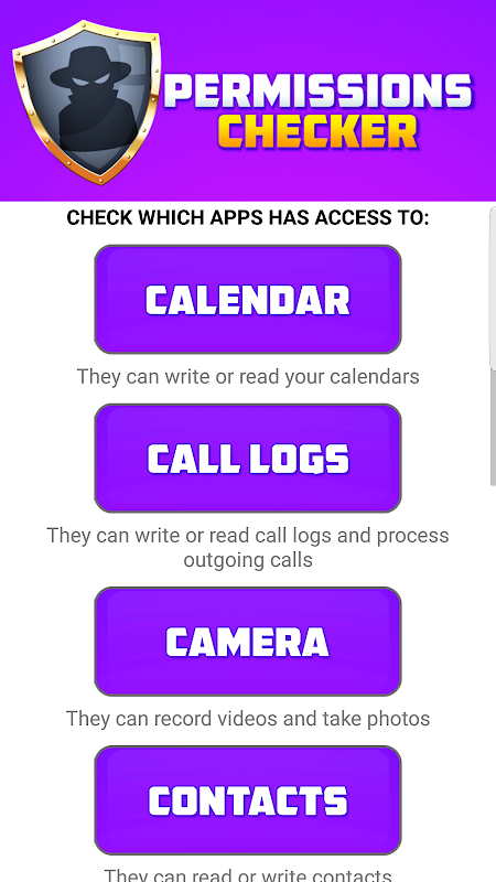 Nasza aplikacja pokazuje, które aplikacje mają "niebezpieczne" uprawnienia: dostęp do kalendarza, dzienników połączeń, aparatu, kontaktów, lokalizacji, mikrofonu, stanu telefonu, wiadomości, pamięci masowej. Za pomocą jednego kliknięcia można zobaczyć, które aplikacje mogą być ryzykowne ze względu na ich możliwości. Możesz także ukryć aplikacje systemowe, ponieważ powinny być bezpieczne od samego początku. To najlepsza aplikacja dla paranoików i ludzi, którzy dbają o swoje bezpieczeństwo!