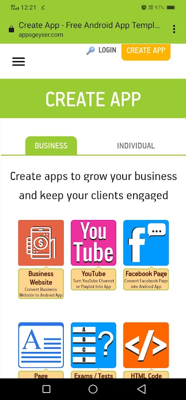 AppsGeyser is an app maker for android without coding and 100% free.