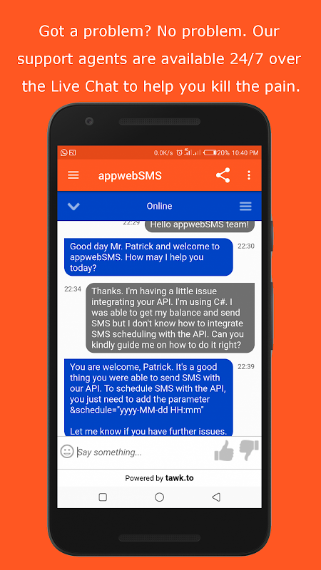 Dynamiczni i interaktywni użytkownicy appwebSMS często lubią, udostępniają i świadczą o uzależniającej jakości usług w aplikacji, co jest wspierane przez dużą liczbę użytkowników produktu. Technologia nie tylko już wspiera biznes, ale jest w samym centrum innowacji biznesowych i strategii. appwebSMS wchodzi do gry.