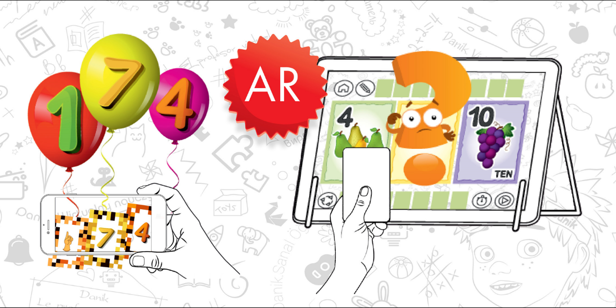 Скачать и распечатать на принтере карточки. Ребенок решая задания программы, подносит карточки к камере планшета.