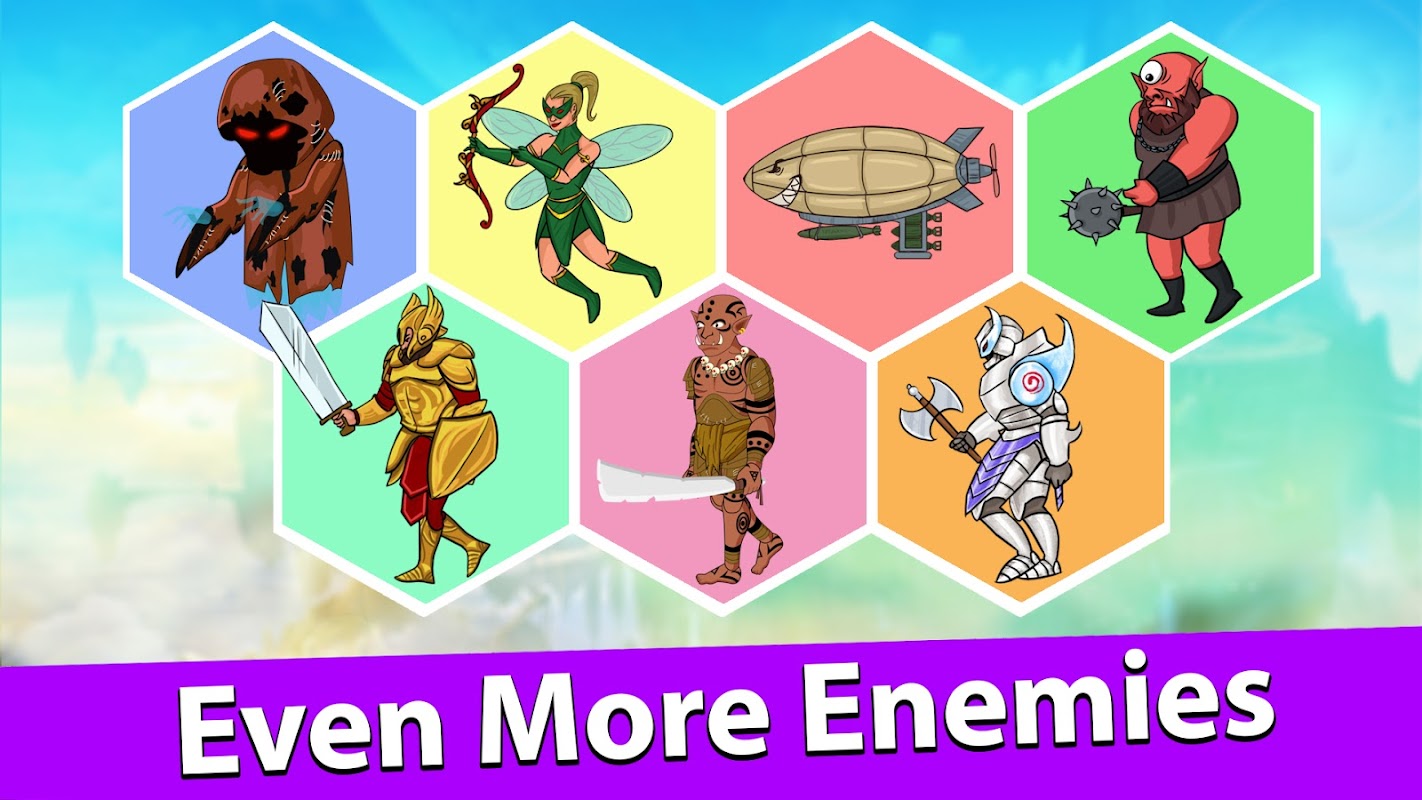 Proste i intuicyjne sterowanie. Dotknij ekranu i pociągnij, aby naładować swój epicki łuk. Zniszcz wrogów, wybierając najlepszy kąt ataku.