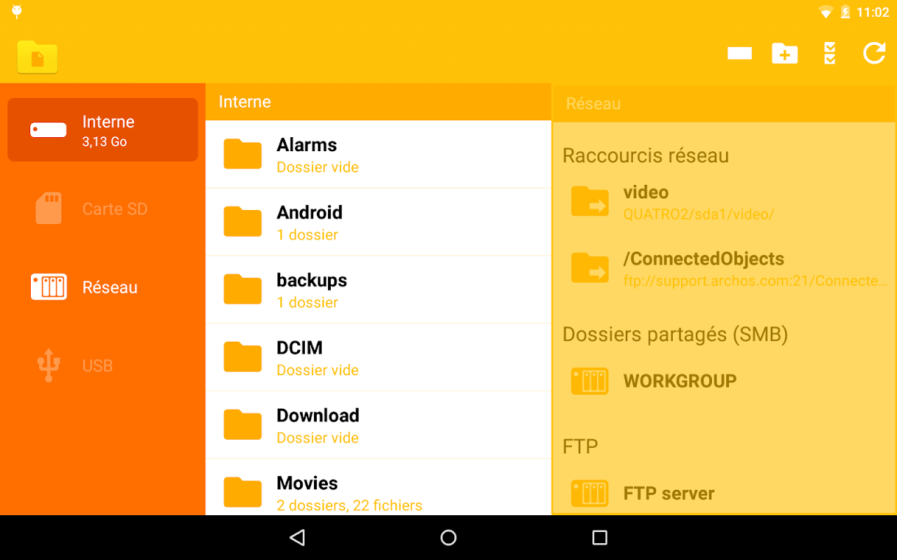 - Pozwól, aby uzyskać dostęp do pamięci wewnętrznej, sieciowej pamięci masowej (SMB, FTP, SFTP), zewnętrzną sdcard, zewnętrznych pamięci USB (tryb USB Host)
