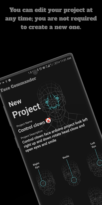 Face Commander Arduino i kontroler Bluetooth ESP32 pozwalają na zapisanie nieograniczonej liczby projektów oraz edycję lub usunięcie ich w dowolnym momencie.