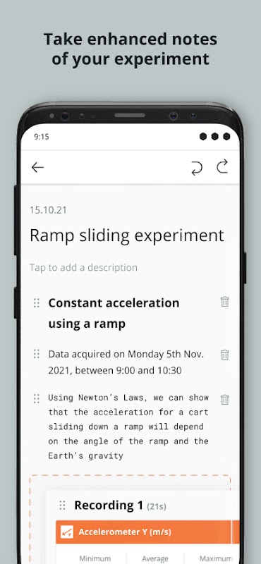 Zbieraj dane, przeprowadzaj eksperymenty i rejestruj wyniki za pomocą czujników urządzenia.