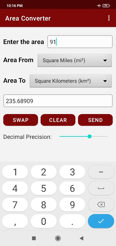 Niezależnie od tego, czy chcesz przeliczyć kilometry kwadratowe na metry kwadratowe, obliczyć powierzchnię terenu, czy porównać różne jednostki, takie jak akry z milami kwadratowymi, ta aplikacja zapewnia szybkie i dokładne wyniki. Idealny dla studentów, inżynierów i każdego, kto szuka bezpłatnego konwertera obszarów offline.
