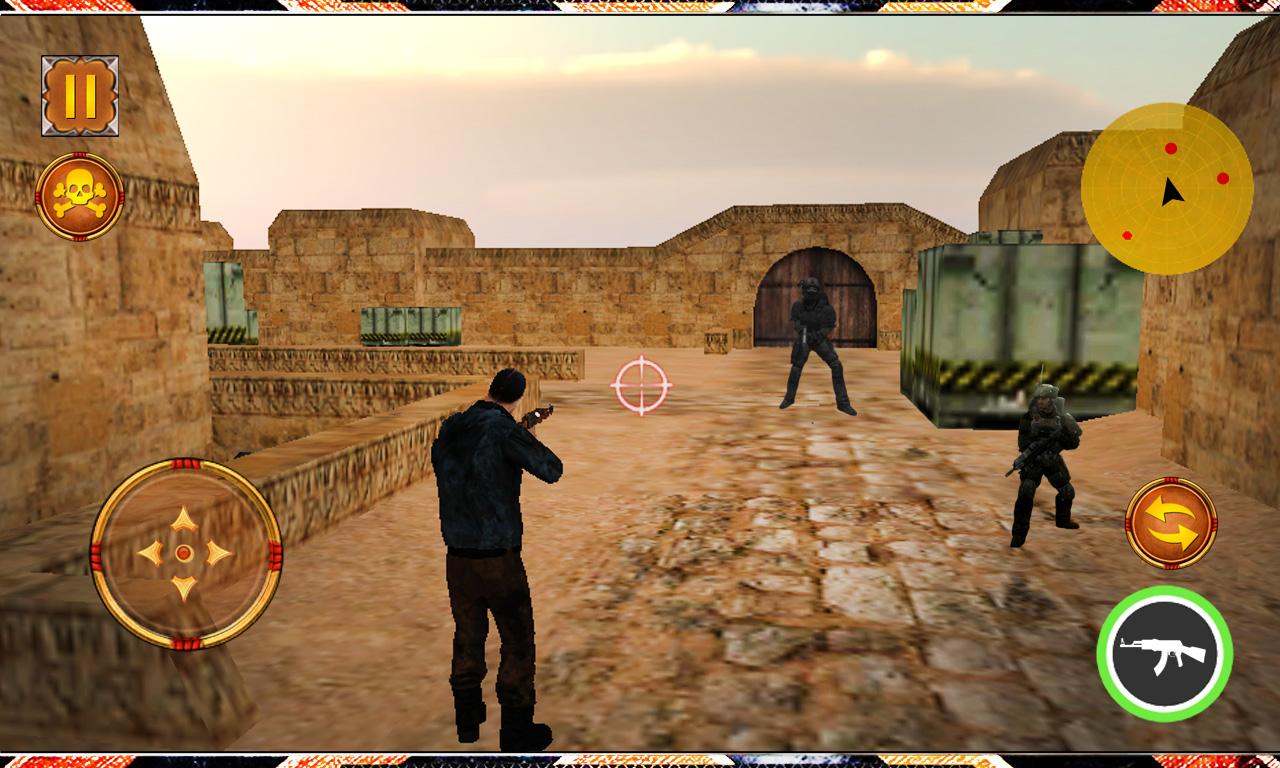 Army Commando Terrorist Attack is a (TPS) 3rd person shooting and action game. In this army commando action game our player is an encounter specialist on some secret black ops. That’s why there will be no backups to arrive. Game player is showed as an agent of swat team. In this killing operation you will have the most intense action of shooting in War field. Agent had a duty to clear all are as from the dirty existence of brutal murderers. Terrorists have been teamed up. They are already in the most important buildings of city. Have to kill them all to make that area secure. Player will be all alone in that rainy firing and must survive. This commando shooting game is a war of survival and kill. Only who shoots first matters. Damn mobster has near real artificial human intelligence. Enemies can hide behind every corner after all that’s a battle field. War crazy, brutal gangs don’t know anything but fight. In this Army Commando Terrorist Attack game player is equipped with heavy ammo Sniper gun, Pistol, M16, M4, MP5, AK47, Shotgun and Machine gun. You can change the weapons with a single button.