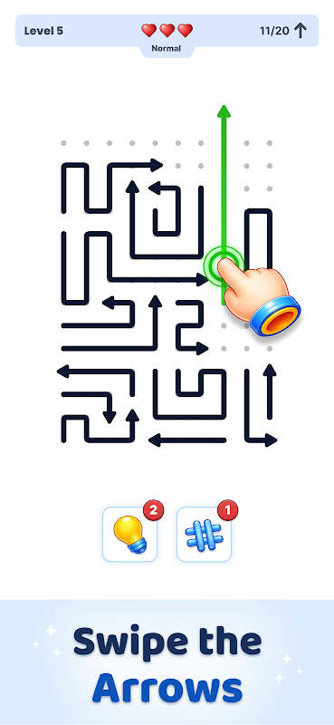 Trenuj swój mózg dzięki ponad 1000 ręcznie wykonanych poziomów łamigłówek. Zacznij od prostych siatek z jedną strzałką i stopniowo stawiaj czoła złożonym, wielokierunkowym labiryntom, które wystawią Twoje strategiczne myślenie na próbę. Każda łamigłówka jest projektowana ręcznie — bez powtórzeń, bez skrótów.