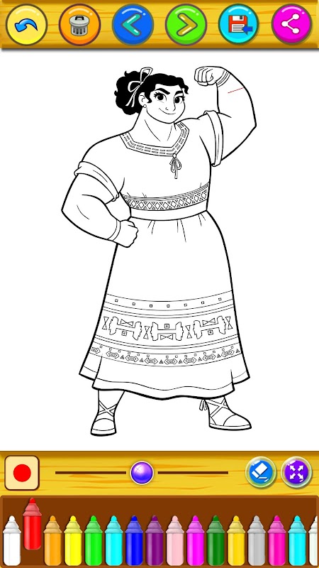 Kolorowanka Mirabel zawiera wiele uroczych kreskówek, takich jak kolorowanka z emoji Dolores, kolorowanka do rysowania, kolorowanka Encanto, kolorowanka z warzywami i kolorowanka z grami Camilo.