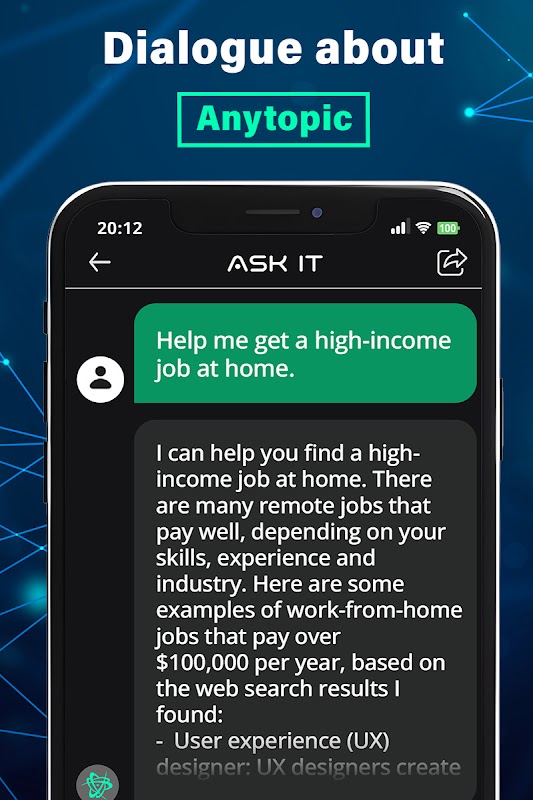 Przyjazny dla użytkownika projekt i interfejs aplikacji Ask IT - Chatbot GPT pozwala w mgnieniu oka rozpocząć rozmowę z naszym AI Chatbot GPT. Dzięki naszej zaawansowanej technologii sterowanej sztuczną inteligencją GPT, chatbot GPT rozumie Twoje zapytania i generuje odpowiedzi podobne do ludzkich. Może nawet polecić książkę do przeczytania lub film do obejrzenia!