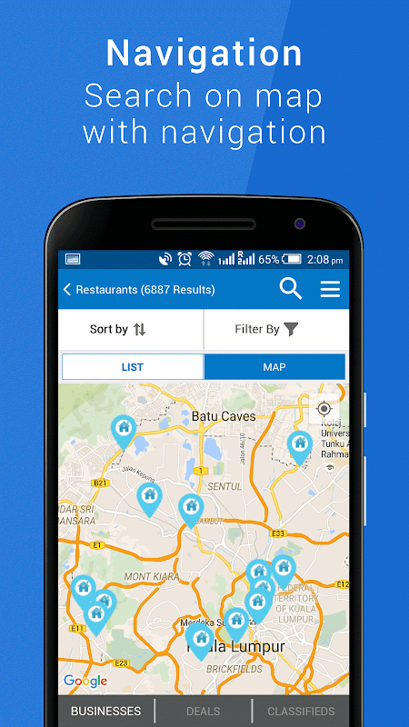 Map and Navigation: The app helps you to locate the businesses, restaurants, spa, clinics, temples, shopping malls and deals on the map, so you can navigate easily.