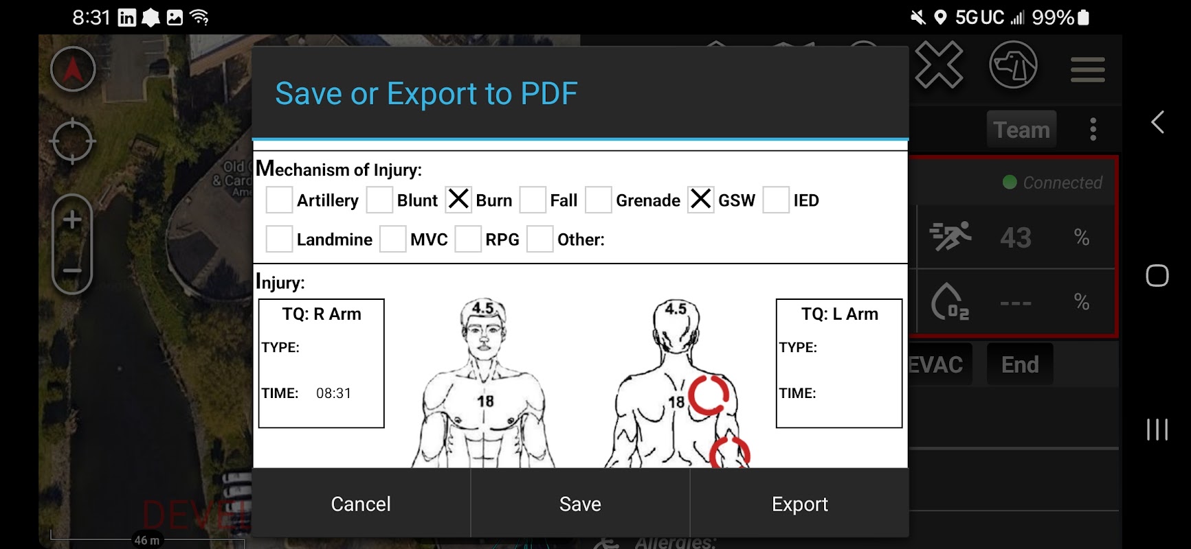 HAIL to platforma wywiadu medycznego, która cyfrowo łączy parametry życiowe, zabiegi medyczne i prośby użytkowników o interwencję na krawędzi z centrami dowodzenia i placówkami intensywnej terapii. HAIL jest kompatybilny z dowolną wersją ATAK, integruje się z urządzeniami do noszenia, digitalizuje informacje o leczeniu i wspiera przepływy pracy CASEVAC.