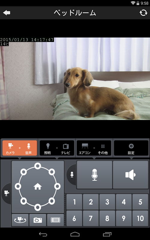 カメラの画像を見ながら、上下・左右にカメラの向きを変えたり、カメラのマイクに入る音声を聞くことが可能です。