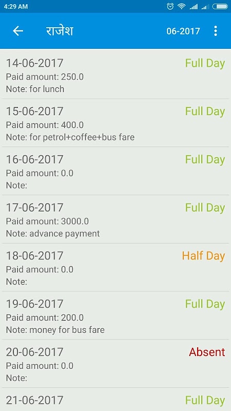 Mark i frekwencja utwór swoich pracowników z ich codziennych płatności i notatki.