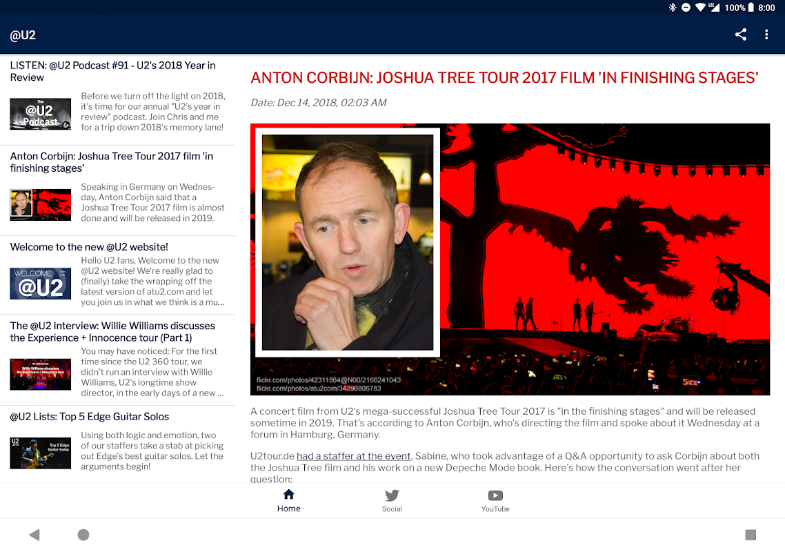 Our official Android app offers U2 news and information from atu2.com, since 1995 the oldest independent source for news about the Irish rock band U2. @U2 has a staff of two dozen fans around the world who write and report original stories, commentaries, essays, reviews, and much more. Our mobile app offers the latest U2 news from our main web site, our blog, our Twitter account, and several more @U2 sources.