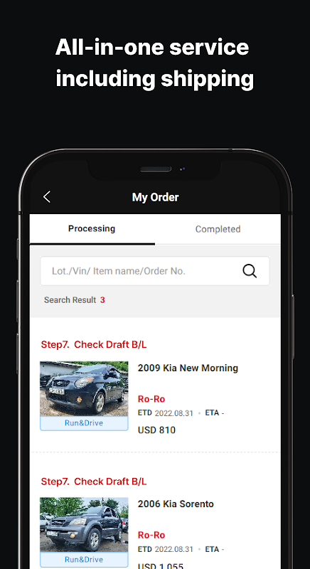 Nie jest wymagany agent spedycyjny. Wyślemy dla Ciebie pojazd za pomocą naszej usługi wysyłkowej na żądanie po konkurencyjnych cenach. Po prostu licytuj, a my zajmiemy się dostawą do Twojego kraju.