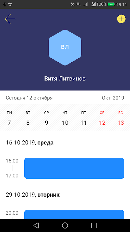 Делитесь расписанием и планируйте встречи с другим пользователем, если он есть в контактах вашего телефона. Вы можете указать свой никнейм — так будет легко вас найти