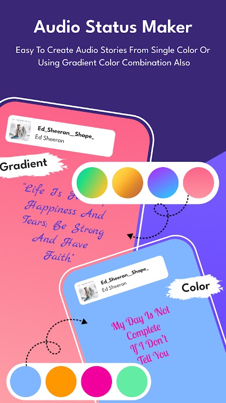 🎵 Wprowadź tekst z kolorem i piękną czcionką, aby utworzyć status audio.