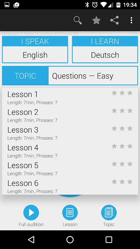 AudioBrain Język zawiera już 585 zwrotów w 7 językach.