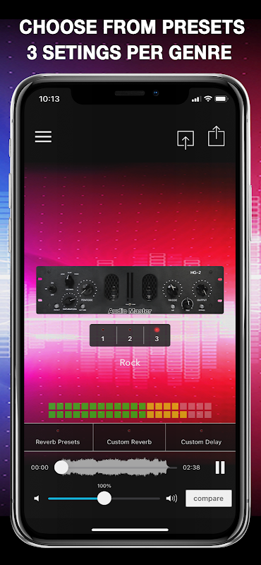 Wybierz między naszym w pełni regulowanym 6-pasmowym korektorem lub ustawieniami 3 ustawień na gatunek. Eksportuj, zapisuj i udostępniaj w dowolnym miejscu.