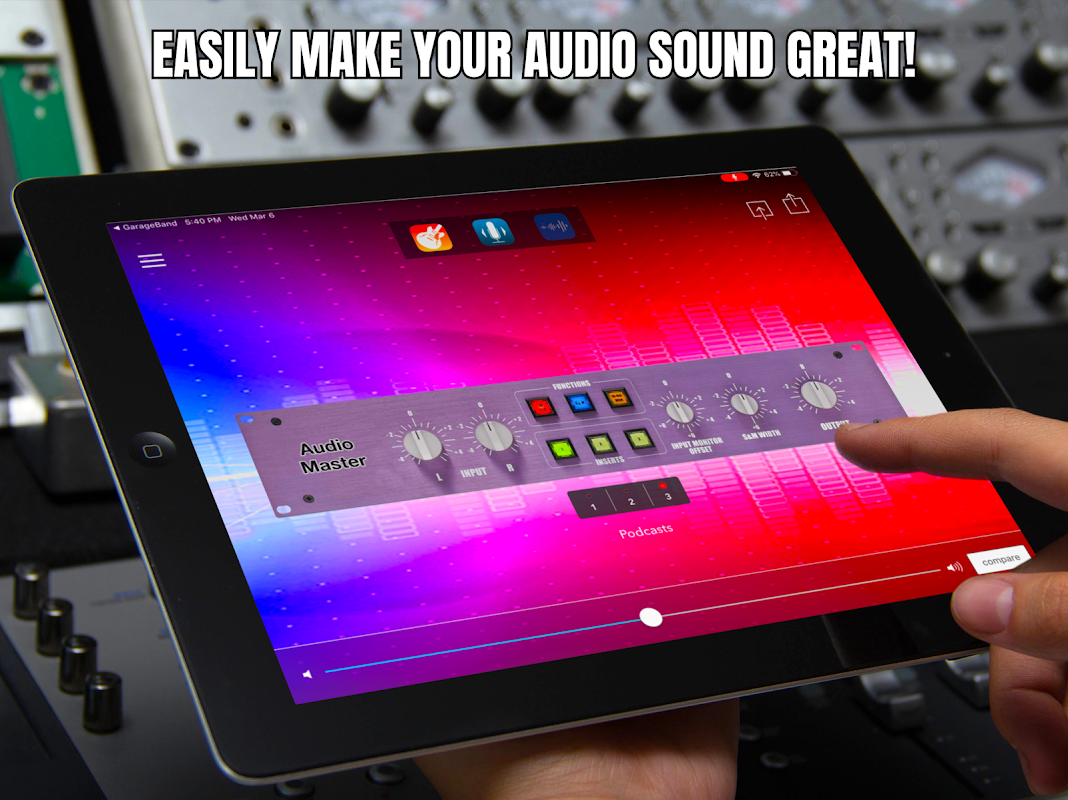 Muzycy! Podcasterzy! Artyści lektorów! Każdy, kto nagrywa dźwięk. Pozwól, aby AudioMaster dopracował Twoje audio. AudioMaster natychmiast maksymalizuje głośność i poprawia dźwięk nagrania.