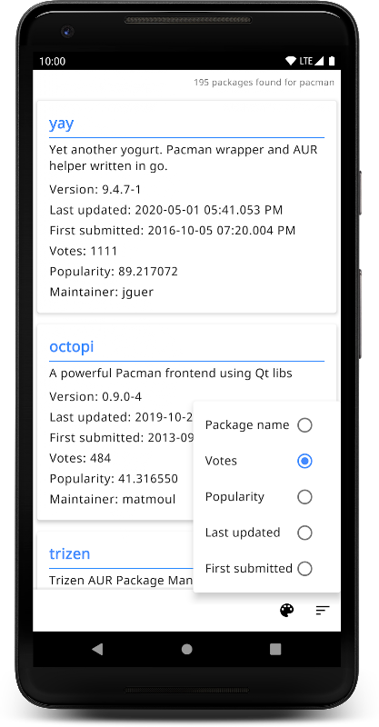 Prosta przeglądarka pakietów Android AUR [Arch Linux User repository].