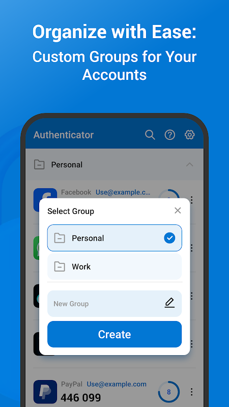 Oferuje również przyjazne dla użytkownika zarządzanie grupami, umożliwiając bezproblemową organizację wielu kont online i uniknięcie wszelkich nieporozumień. Dodatkowo obsługuje zarówno OTP oparte na czasie, jak i OTP oparte na liczniku.