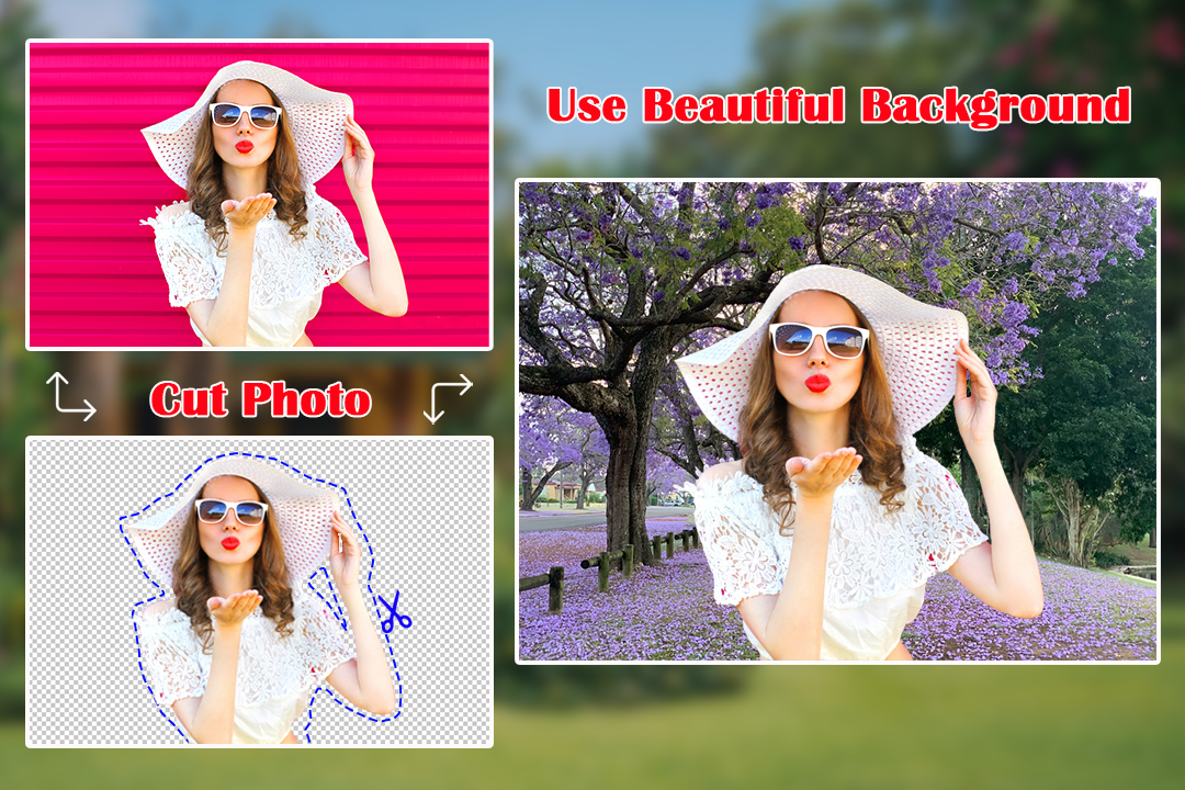 Photo Background let you change your background photo. You can use Cut Out as background remover, background changer app as you like.