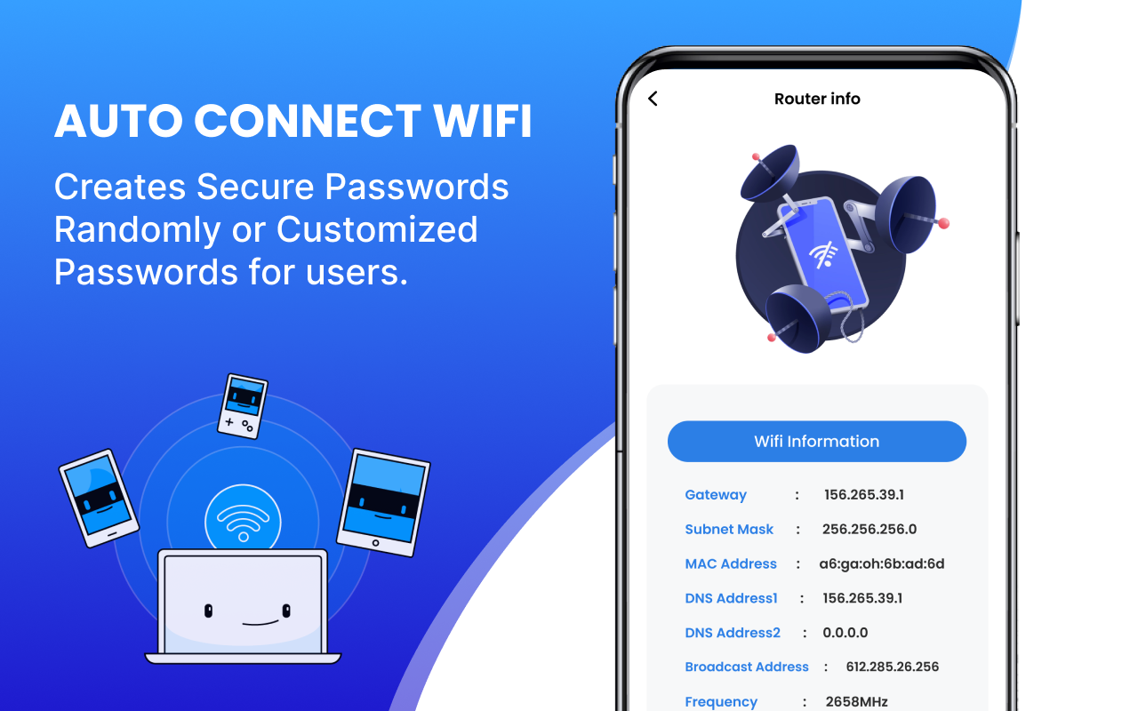 By using The Wi-Fi Auto Connect app you get the Connected WiFi Router Information and also save them for future with best WiFi Automatic app.