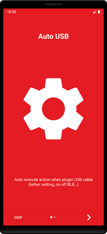 Ta aplikacja została zaprojektowana jako automatyczne otwieranie Tethering przez USB, wibrowanie urządzenia ... itd. Po podłączeniu lub odłączeniu kabla USB.