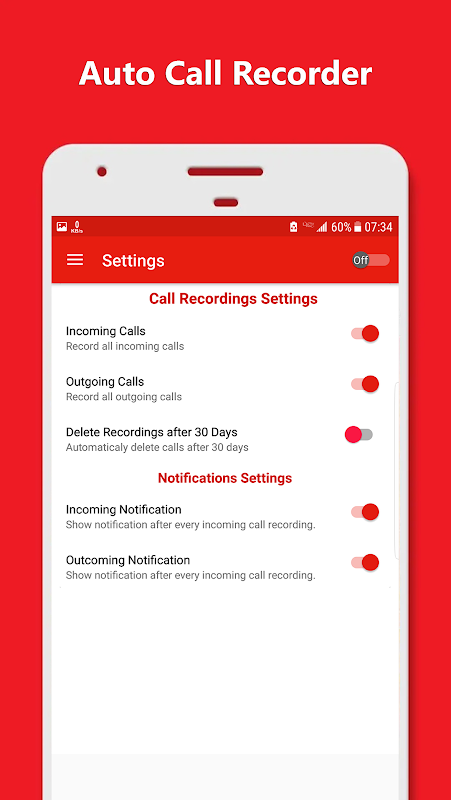 Automatic Call Recorder jest łatwe do wykorzystania i zaszył się za bystry instynktownej UI.