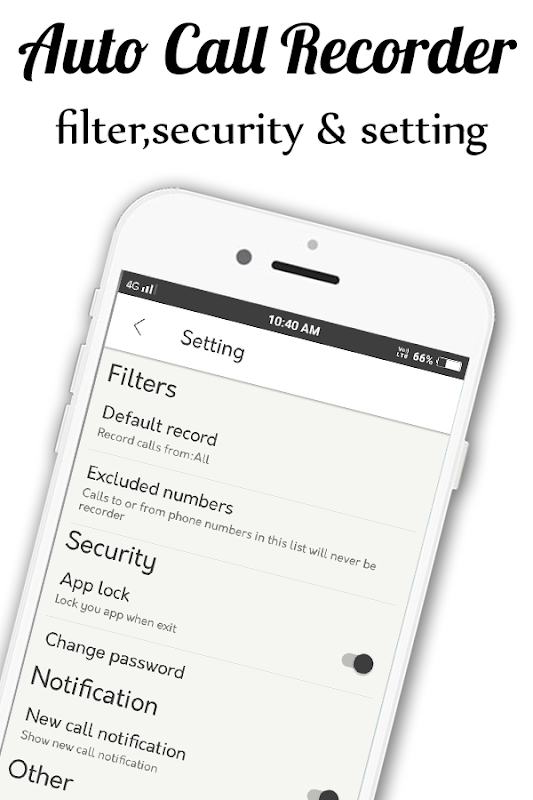 - Option to make hidden call recorder without alerting or notification while in the call.