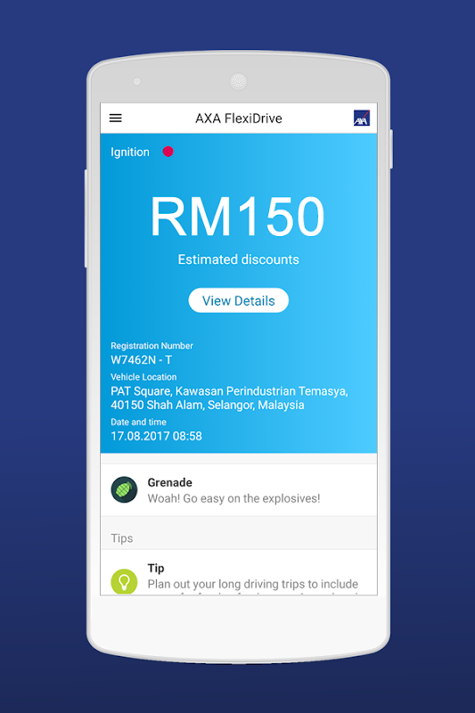 AXA FlexiDrive jest 1. kiedykolwiek telematyki ubezpieczenia komunikacyjne w Malezji, który nagradza za bycie bezpieczny kierowca maksymalnie do 20% zniżki na składki ubezpieczeniowej.