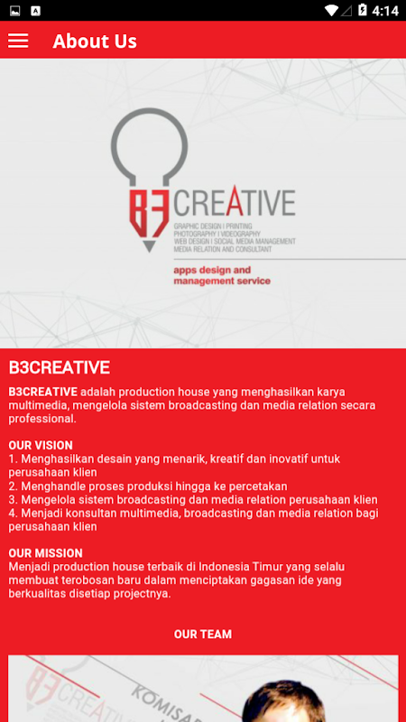 B3 Creative adalah production house yang menghasilkan karya multimedia, mengelola sistem broadcasting dan media relation secara professional.