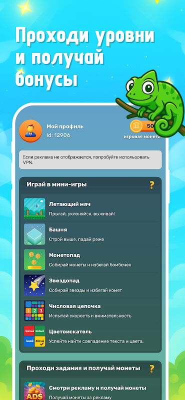 🎮 Играй в Залипалка, 📝 выполняй задания, 📺 смотри рекламу — i получай игровые монеты, участвуя в бонусной системе вознаграждений!