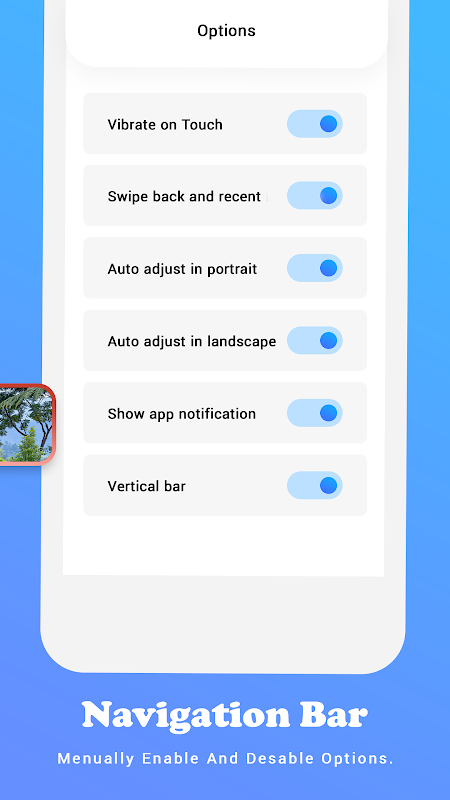- Posiada opcję zwiększania i zmniejszania rozmiaru/przestrzeni przycisku paska nawigacyjnego.