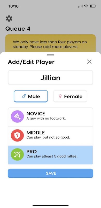 Aplikacja kolejkowa dla grupy badmintona