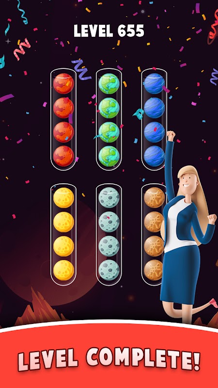 • Stack all the balls with the same color into a single tube and complete the level and earn coin.
