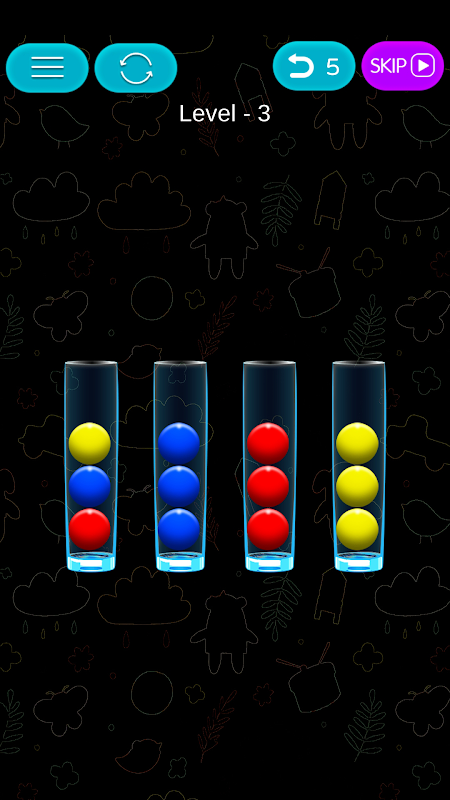 Po prostu posortuj kulki tego samego koloru do tej samej tuby i ukończ ją w jak najmniejszej liczbie kroków!