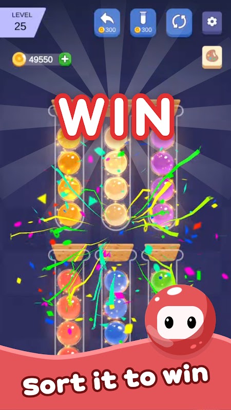 Możesz układać kulki tylko tego samego koloru jedna na drugiej. Najpierw spróbuj znaleźć puste tuby, a następnie przenieś tam kulki. Najlepsze rozwiązanie tej łamigłówki nie istnieje. Każda droga do wygranej jest idealna, więc możesz zastosować własny styl sortowania kulek.