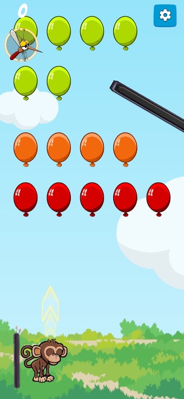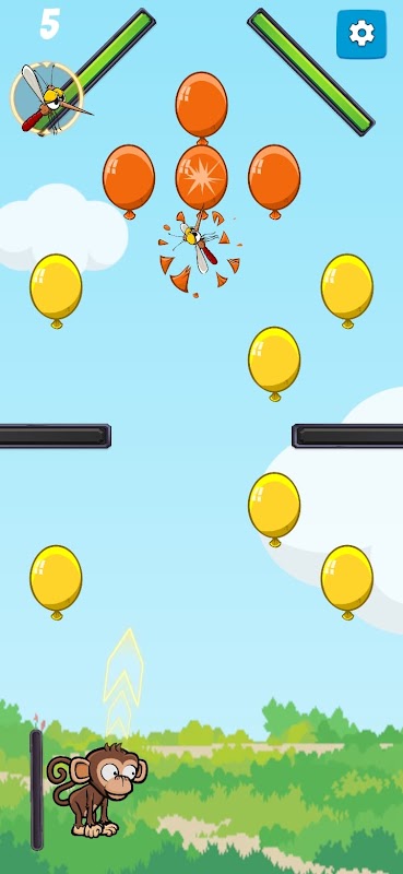 🐒 Urocza postać małpy: Rzucaj igłami, rozdymkami, ważkami i ptakami, aby przebijać balony ze swoim małpim kumplem!