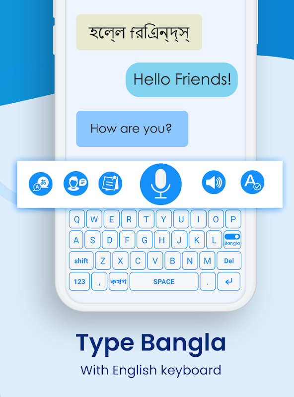 A phonetic keyboard designed for those who love to type using Bangla keyboardor Learn Bangla in roman english with Bangla input method. This keyboard provides you Bangla typing and Bangla letters So, you can type or Learn Bangla through Bangla keyboard/keypad. Keyboard to type Bangla letters in Android. Bangla typing is a free transliteration and Bangla input method tool, Just type in roman English and press space that English word will be converted into Bangla script automatically.