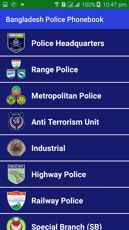 বাংলাদেশ পুলিশের সকল সরকারী ফোন নম্বর সমূহ, যেমন, সকল জেলার নম্বর, সকল মেট্রো পলিন পুলিশের পুলিশের ফোন নম্বর, সকল থানার ওসির ফোন নম্বর, র্যাব ইউনিটের ফোন নম্বর সমূহ।