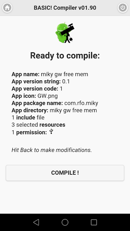 Compile your RFO BASIC! programs (*.bas) and resources into an APK, directly from your Android phone or tablet!