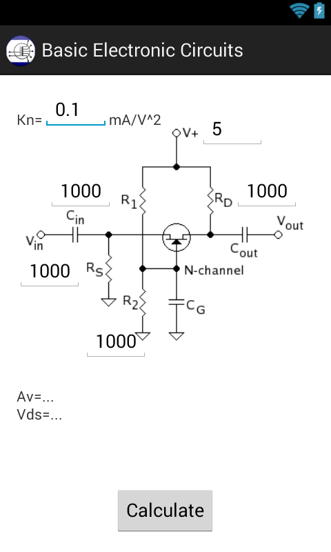 Dzięki tej aplikacji można obliczyć podstawowe działania tranzystora.